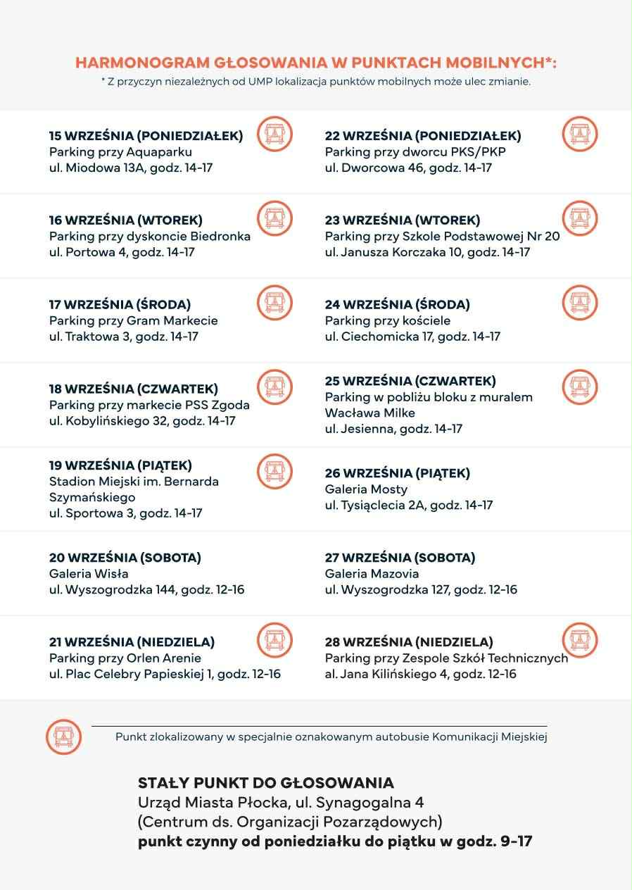 Głosować może każdy mieszkaniec Płocka, bez względu na wiek. Osoby niezameldowane, ale mieszkające w Płocku, mogą głosować wyłącznie stacjonarnie. Dzieci poniżej 13 lat głosują w obecności rodzica lub opiekuna prawnego i muszą mieć dokument.